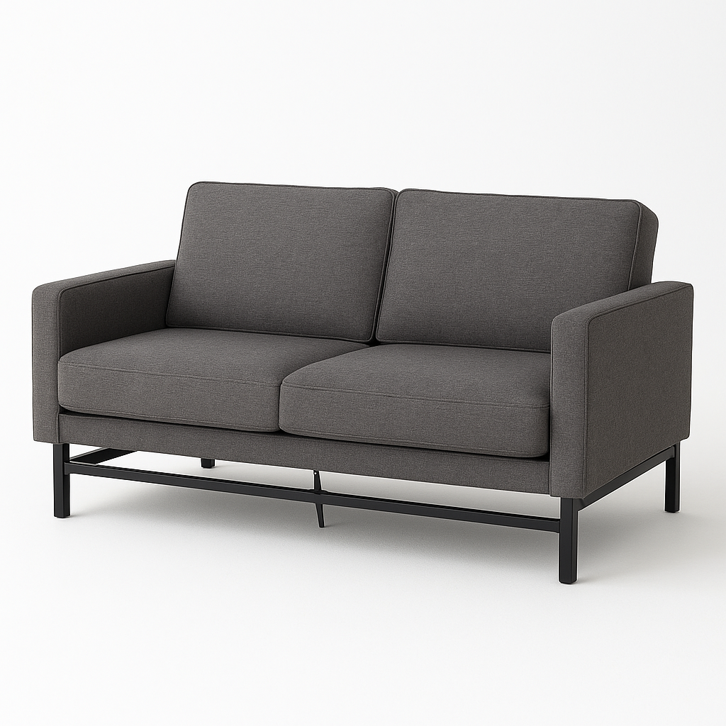 Сучасний диван у стилі лофт з металевим каркасом і сірим текстильним оббиванням.